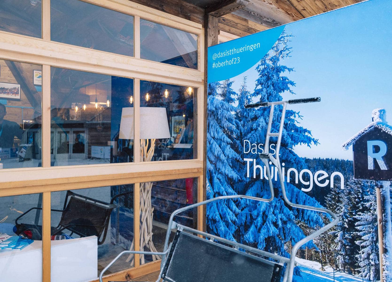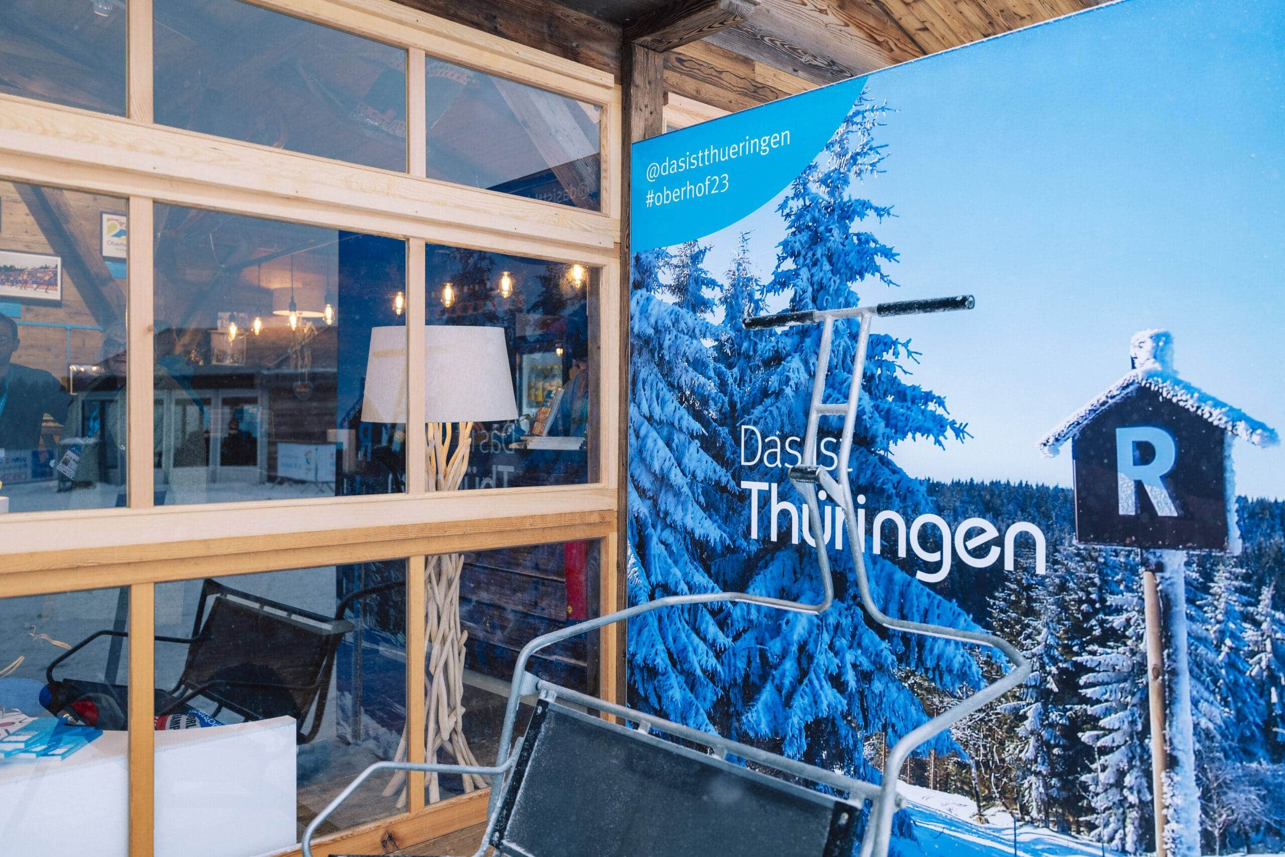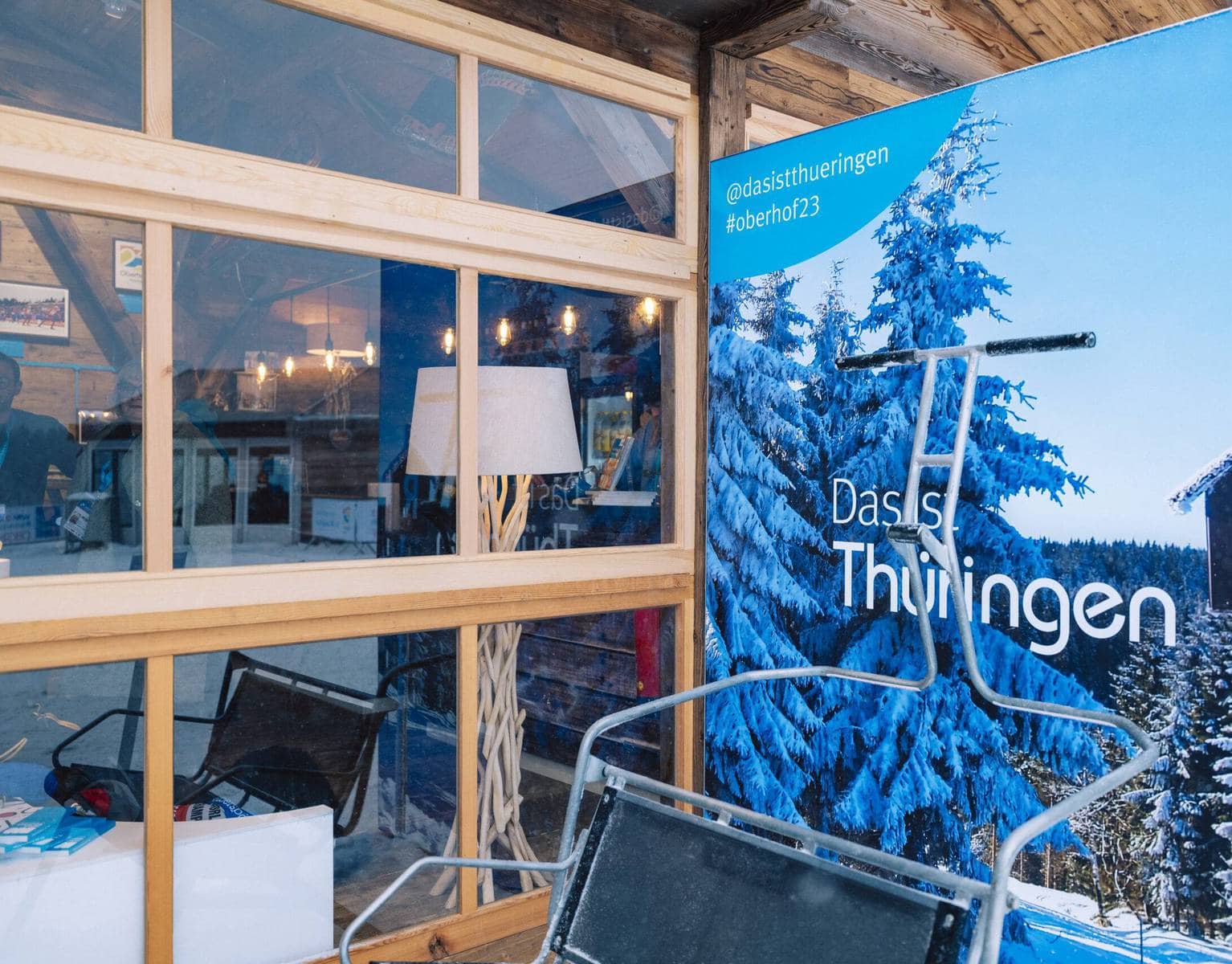Für die Biathlon- und Rennrodel Weltmeisterschaften 2023 in Oberhof hat Kontrapunkt in Zusammenarbeit mit der Werbeagentur KNSK eine Thüringenhütte für das Thüringer Landesmarketing konzipiert und umgesetzt. Der Fotopoint in Form einer Skiliftgondel vor der Hütte ermöglichte aufregende Fotos. Im Inneren erwartete die Gäste Thüringer Wintersportgeschichte sowie verschiedenste Rennrodel- und Biathlonexponate, komprimiert auf 50 m². Der Signature Drink in thüringenblau rundete das Erlebnis erfolgreich ab.