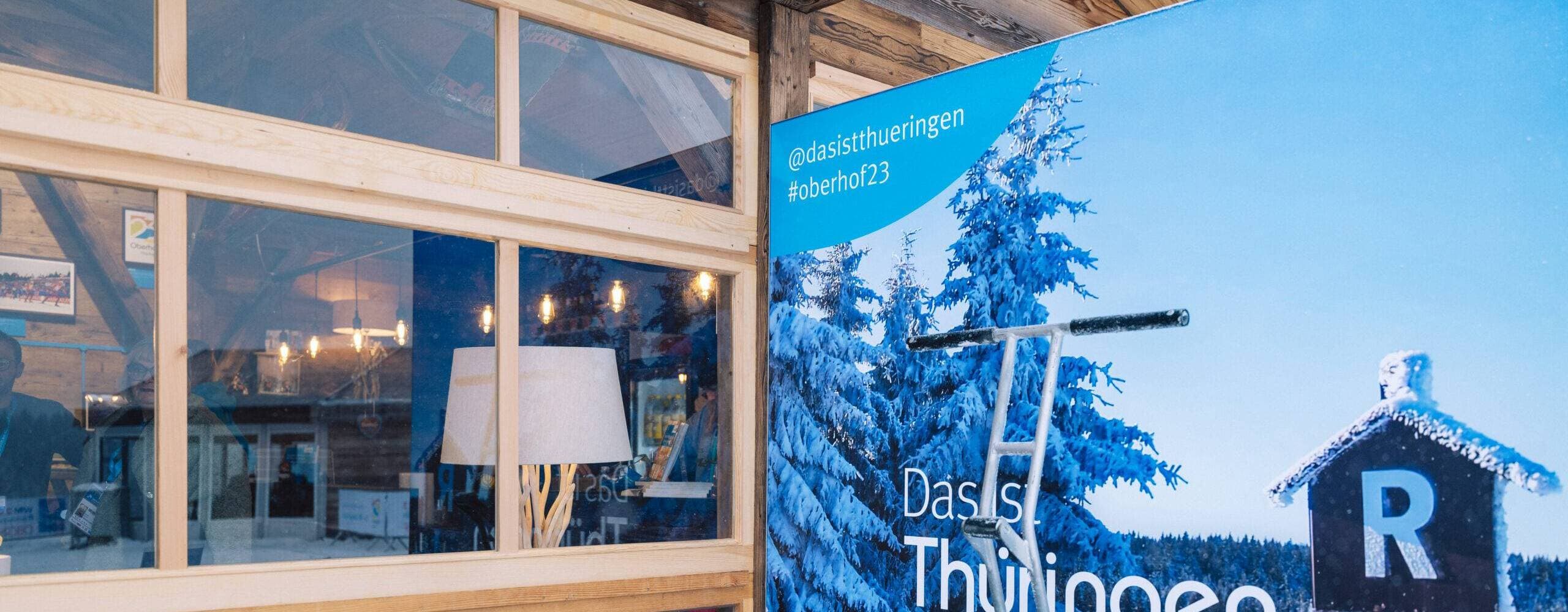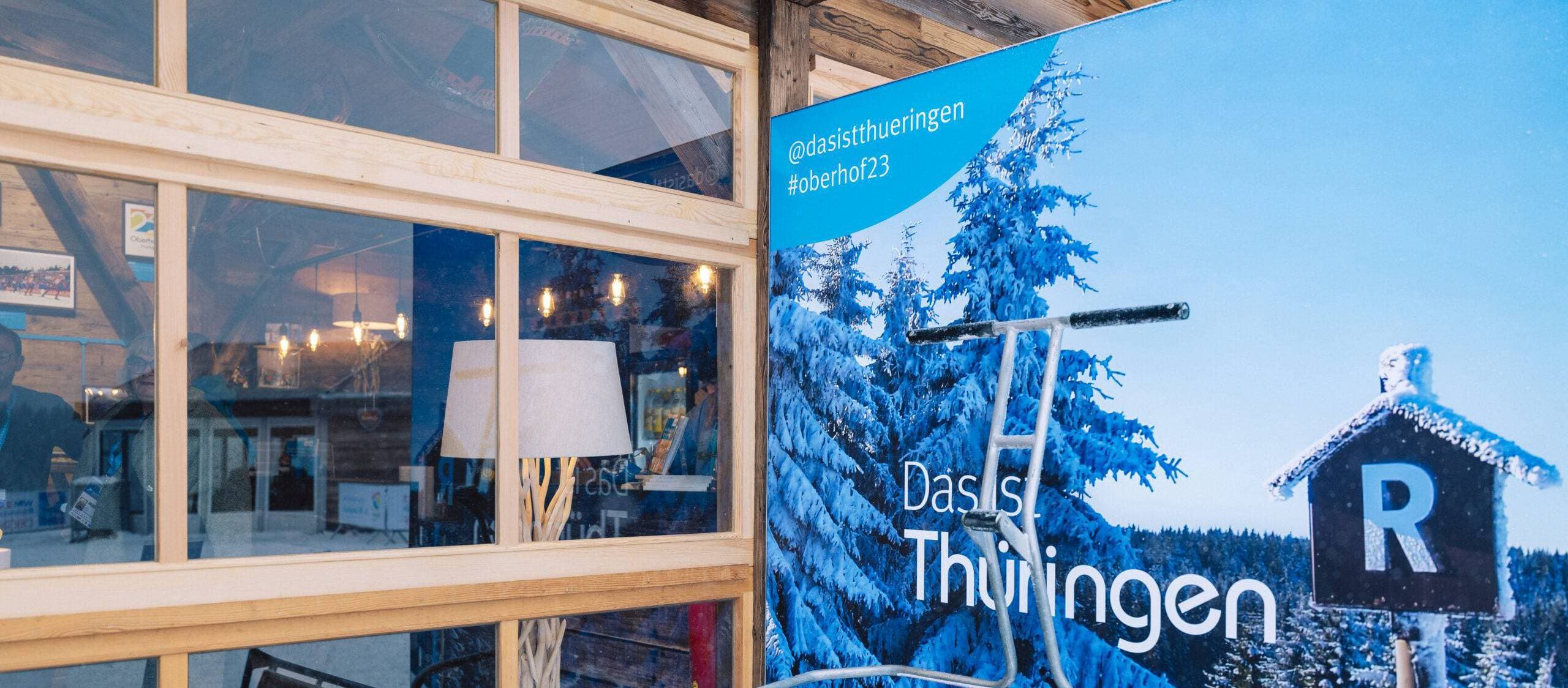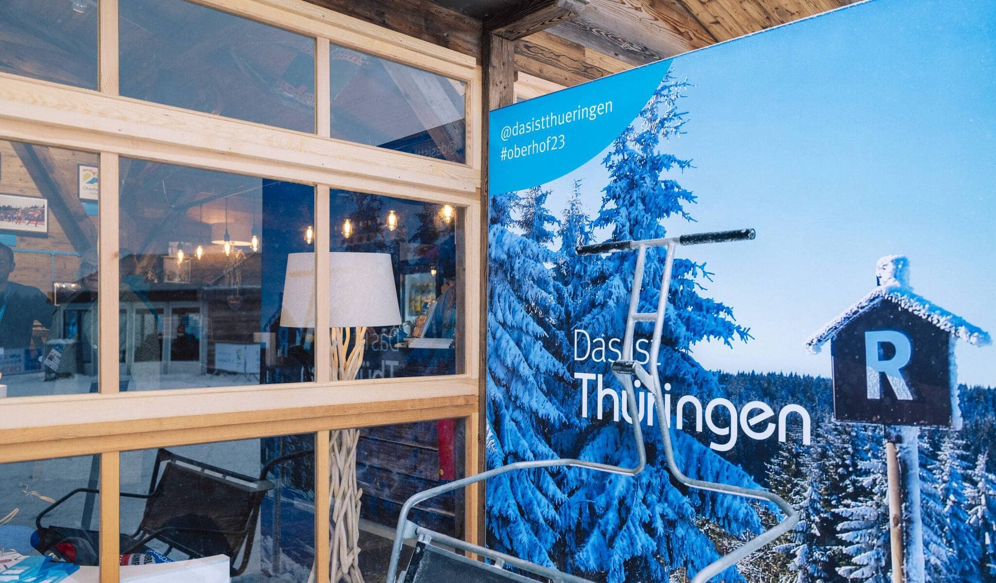 Für die Biathlon- und Rennrodel Weltmeisterschaften 2023 in Oberhof hat Kontrapunkt in Zusammenarbeit mit der Werbeagentur KNSK eine Thüringenhütte für das Thüringer Landesmarketing konzipiert und umgesetzt. Der Fotopoint in Form einer Skiliftgondel vor der Hütte ermöglichte aufregende Fotos. Im Inneren erwartete die Gäste Thüringer Wintersportgeschichte sowie verschiedenste Rennrodel- und Biathlonexponate, komprimiert auf 50 m². Der Signature Drink in thüringenblau rundete das Erlebnis erfolgreich ab.